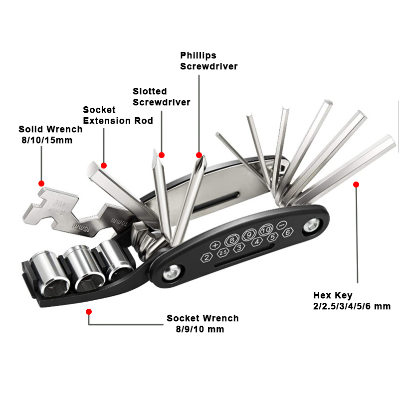 16 In 1 Multi-functional Bicycle Screwdriver Repair Tools Kit Folding Hex Allen Key Wrench Set
