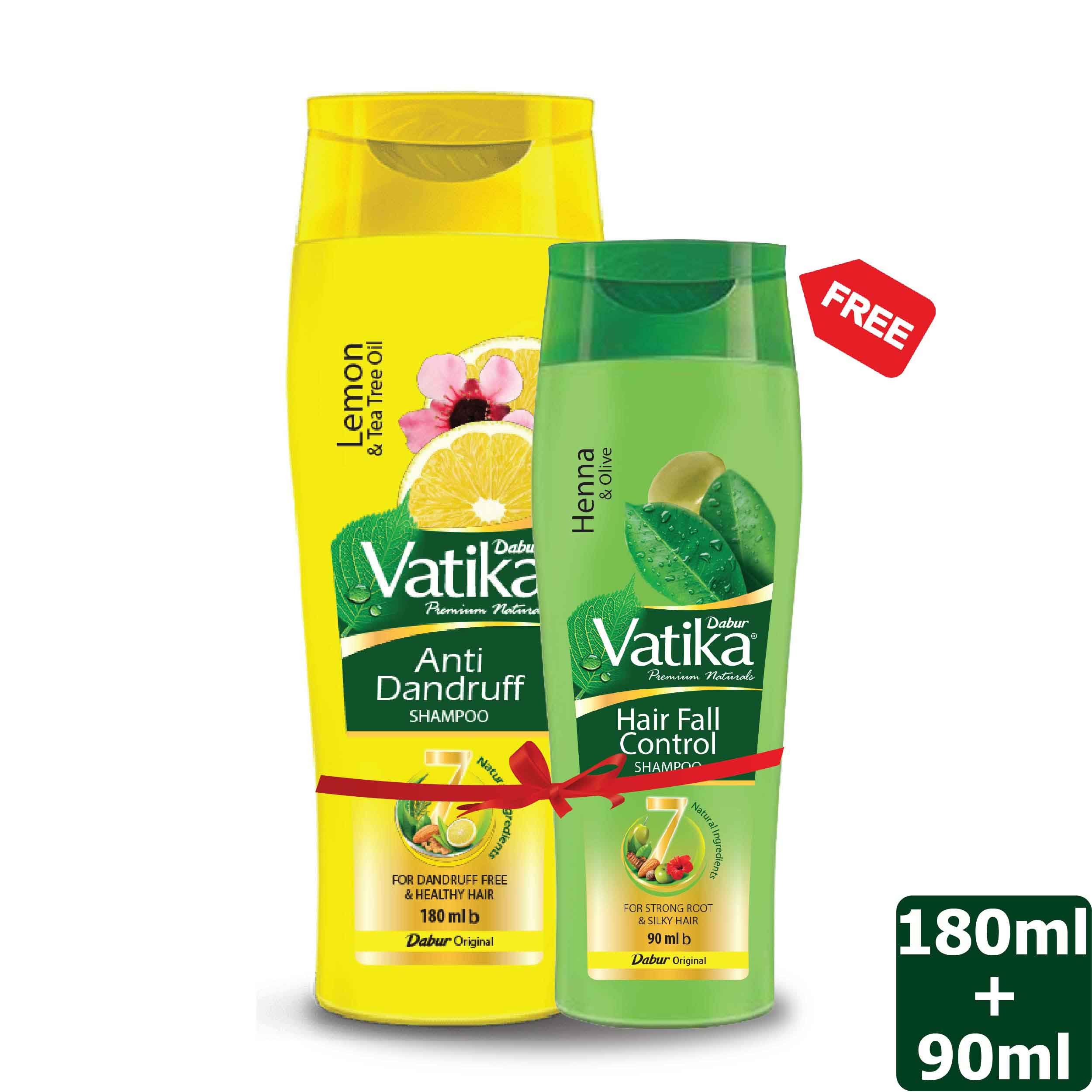 Dabur Vatika Anti-Dandruff Shampoo 180 ml (Free Vatika Hair Fall Control Shampoo 90 ml)
