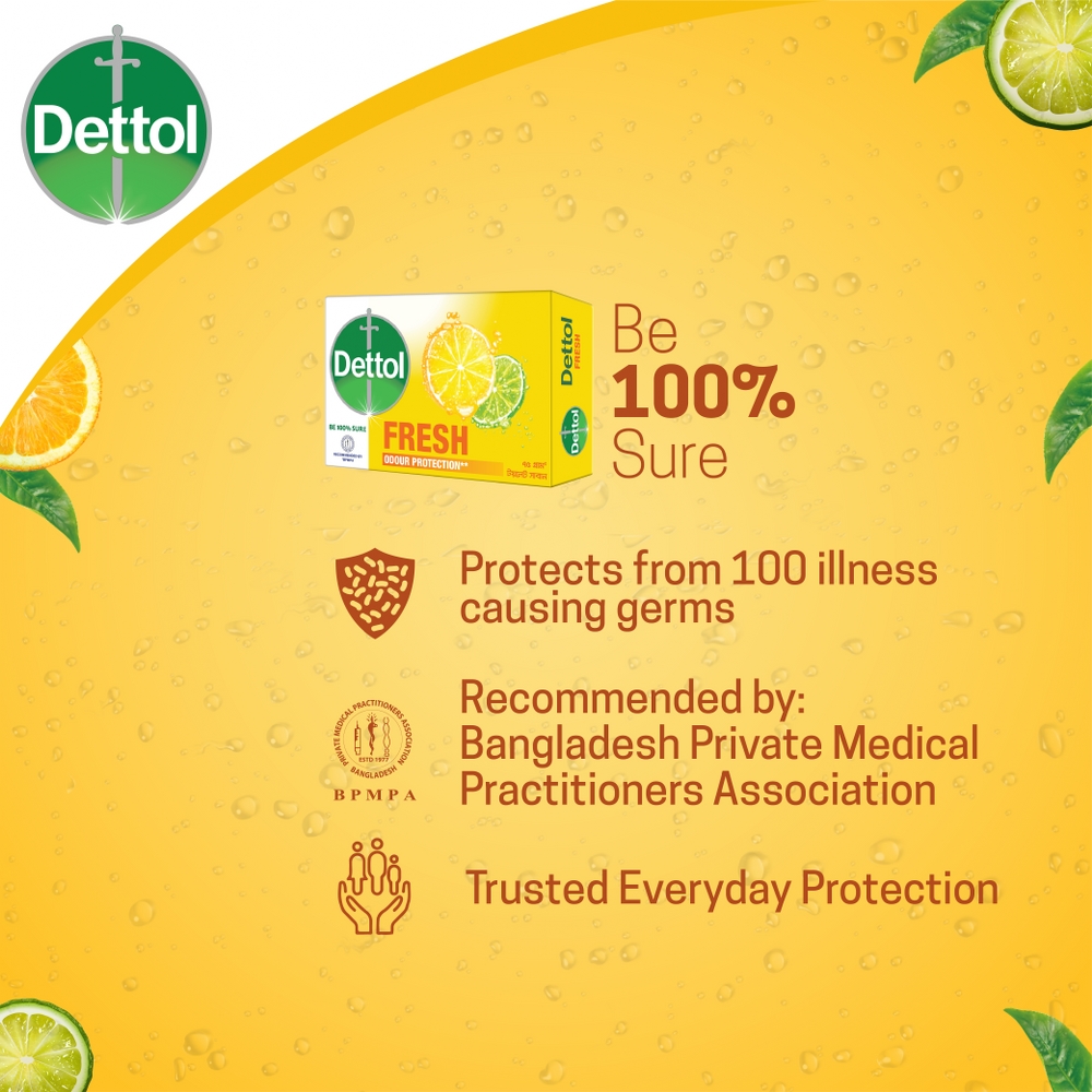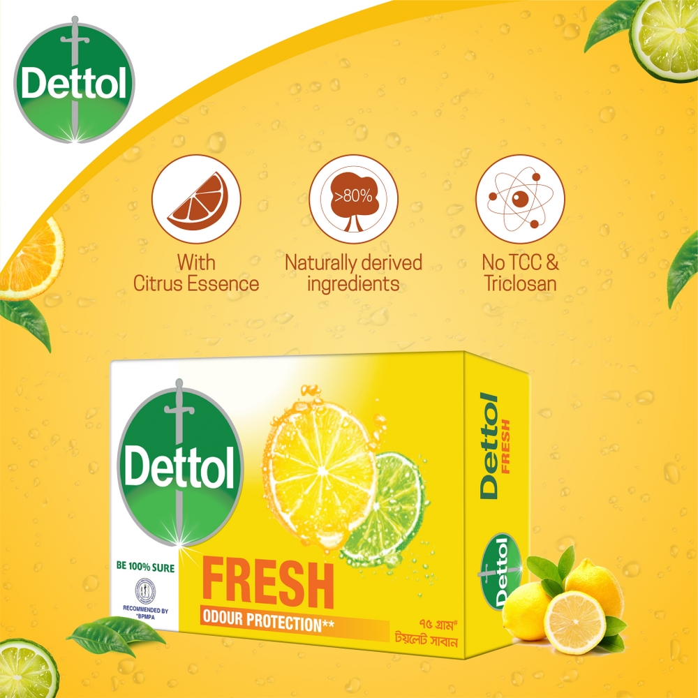 Dettol Soap Citrus Fresh 75gm Bathing Bar, Soap with Orour Protection