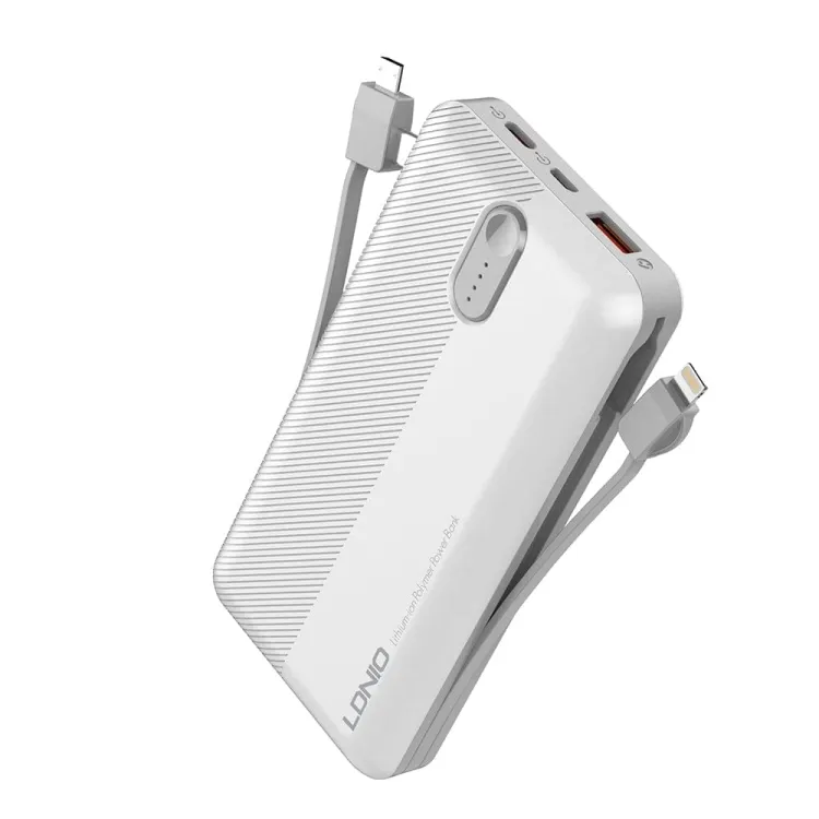 Ldnio PL1013 Dual USB Output Port 10,000 MAh Power Bank With Build-In Cable