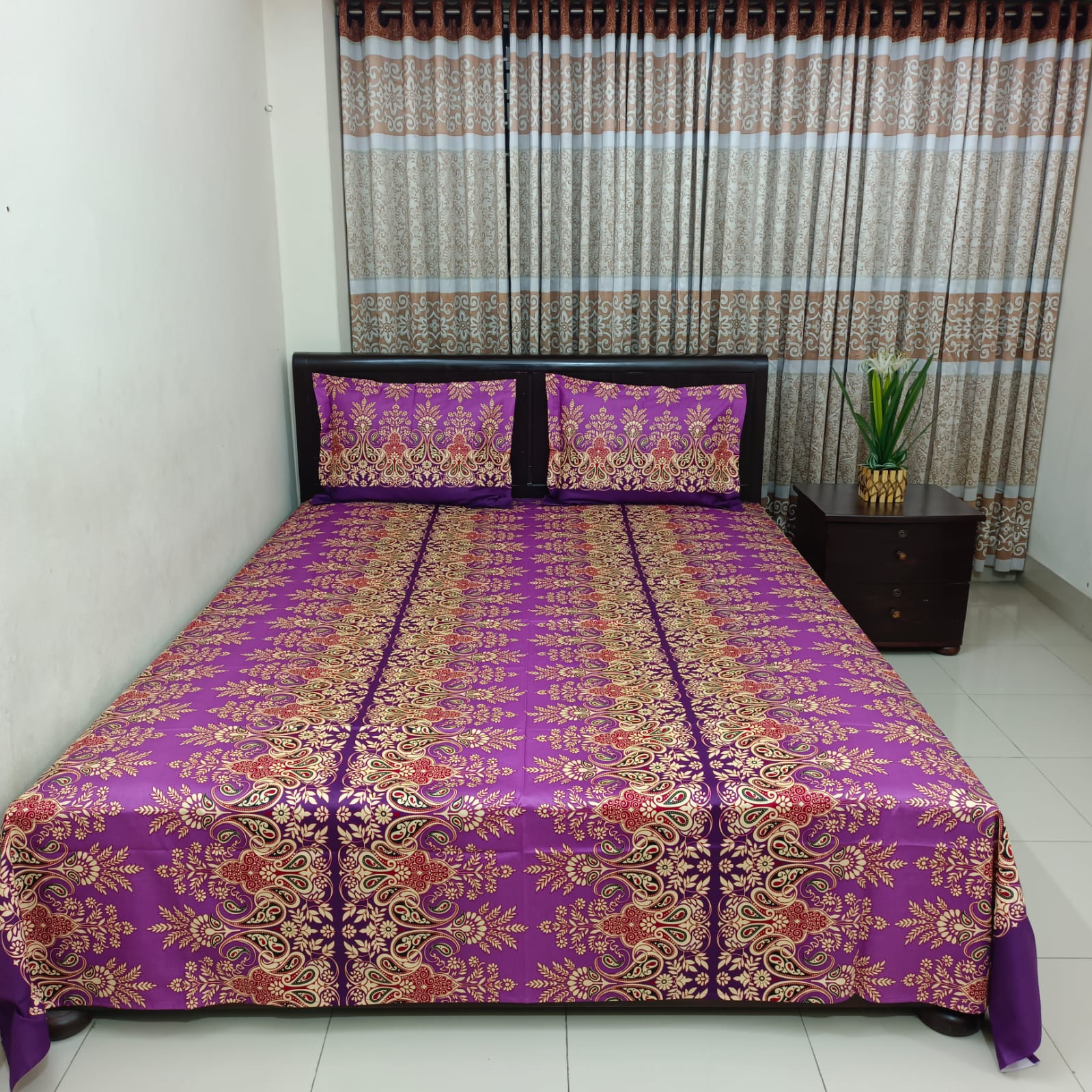 HomeLifestyleBed Sheet Luxury Twill Cotton Bedsheet – King Size – 3Pecs – Purple Nokshi