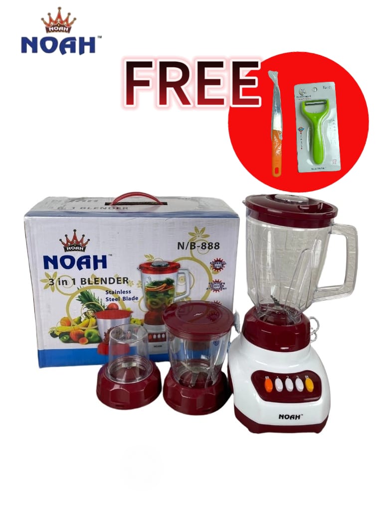 Noah 3 in 1 Blender (Model: N/B 888) – 1.5 Ltr Jar + Free Gifts 🎁