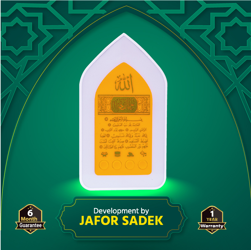 ✅ঘরকে বরকতময় করতে প্লাগ ইন কুরআন। *ঘরকে অদৃশ্য/ অশুভ শক্তির উপদ্রুপ থেকে রক্ষা করতে প্লাগ ইন কুরআন। *অগণিত সওয়াবের জন্য প্লাগ ইন কুরআন। **রাতে ড্রিম লাইট এর জন্য প্লাগ ইন কুরআন। কোনো ঘরে যদি নিয়মিত কোরআন তেলাওয়াত করা হয়, তাহলে সেই ঘরে মহান আল্লাহ বারাকাহ দান করেন। এটি এমন একটি ডিভাইস যেটি ইলেকট্রিক সকেটের সাথে প্লাগ করলেই কুরআন তেলাওয়াত শুরু করবে এবং ড্রিম লাইট হিসেবেও ব্যবহার করা যাবে। ✅১ বছরও যদি প্লাগ থেকে খোলা না হয় ১ বছর পর্যন্ত কোরআন তেলাওয়াত চলতেই থাকবে। রাতে ঘুমানোর সময় তেলাওয়াতের সাউন্ড কম/বেশি এডজাস্ট করে তেলাওয়াত ছেড়ে এবং ড্রিম লাইটের আলো কম/বেশি এডজাস্ট করে ঘুমিয়ে পড়ুন। এই কুরআন তেলাওয়াত সকল অদৃশ্য/অশুভ শক্তি থেকে আপনার ঘরকে সারারাত পাহারা দেবে ইনশাল্লাহ। ঘুম থেকে উঠে আনপ্লাগ করুন। ✅ব্যবহার বিধি: ১.ইলেকট্রিক সকেটের সাথে প্লাগ ইন করুন। ২.কুরআন ও হাদিস শুনতে ১নং বাটন লং প্রেস করুন। ৩.রুকইয়া (হোম বারাকাহ) আয়াত ও জিকির শুনতে ২ নং বাটন লং প্রেস করুন। ৪.সাউন্ড বাড়াতে বা কমাতে ২ নং বাটন বার বার প্রেস করুন। ৫. রুকইয়া (শিশুদের সুরক্ষা সম্পর্কিত) আয়াত শুনতে ৩ নং বাটন শর্ট প্রেস করুন। ৬.রুকইয়া অদৃশ্য বা অশুভ শক্তি থেকে আপনার ঘরকে পাহাড়া দেবার আয়াত শুনতে ৩ নং বাটন শর্ট প্রেস করুন। ৭. ভাষা পরিবর্তন করতে ৩ নং বাটন লং প্রেস করুন। ৮. ৪ নং বাটনে ড্রিম লাইট জ্বলবে (ঘুমানোর সময় লাইটের আলো কম/বেশি এডজাস্ট করে নিন) লং প্রেস করলে ন্যাচারাল সাউন্ড শুনতে পাবেন ✅Islamic Calling Bell ইসলামিক কলিং বেল বাংলাদেশ ৯০% মুসলমানের দেশ। এ দেশে প্রায় ৫ কোটি মুসলিম পরিবার আছে। এর মধ্য প্রায় এক কোটি পরিবার আছে প্রাক্টিসিং মুসলিম যারা ইসলামকে জীবনের সব ক্ষেত্রে মানতে চায়। কলিং বেল এটি একটি অতীব প্রয়োজনীয় পণ্য। বেশিরভাগ বাসা বাড়িতে কলিং বেল এর প্রয়োজন হয়। তাই জাফর সাদেক স্যারের নতুন আবিষ্কার ইসলামিক কলিং বেল ✅ব্যবহার বিধি: আপনার ঘরের মিউজিক/ডিং ডং কলিং বেলটি খুলে আমাদের এই ইসলামিক কলিং বেলটি লাগিয়ে নিন। দরজার বাহিরে কোন আগন্তুক এসে বাহিরে সুইচ এ চাপ দিয়ে ধরে রাখলে প্রথমে সালাম এবং পরে ঘরে প্রবেশ বা বাহির হওয়ার সম্পূর্ণ দোয়া বলবে… ✅Dua Door Bell দোয়া ডোর বেল: এটি এমন ডিভাইস যা আপনার দরজার কোনে লাগিয়ে রাখবেন। যখন কোন মেহমান বা আগন্তক এসে আপনার দরজা খুলবে তখনই দোয়া ডোর বেল একটি করে তিন শব্দের দোয়া বলবে। যতবার দরজা খোলা হবে ততবার ডিভাইসটি একটি করে ছোট দোয়া বলবে। এইভাবে একাধারে ২৫ টি দোয়া বলার পর পুনরায় প্রথম থেকে শুরু করবে। এটি একবার চার্জ দিলে পাঁচ দিন চলবে। ✅ব্যবহার বিধি: দরজার দুটি অংশ একটি চৌকাঠ অন্যটি দরজা।যেদিক থেকে দরজা খোলা হয়,হাতল বরাবর দরজার উপর
