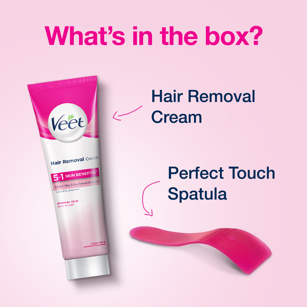 Veet Hair Removal Cream 100gm Normal Skin for Body & Legs, Get Salon-like Silky Smooth Skin with 5 in 1 Skin Benefits