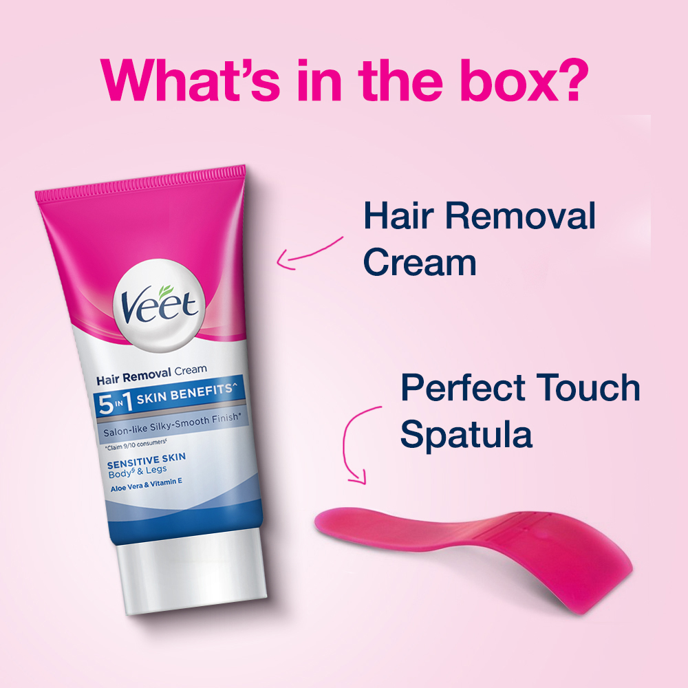 Veet Hair Removal Cream 25gm Sensitive Skin for Body & Legs, Get Salon-like Silky Smooth Skin with 5 in 1 Skin Benefits