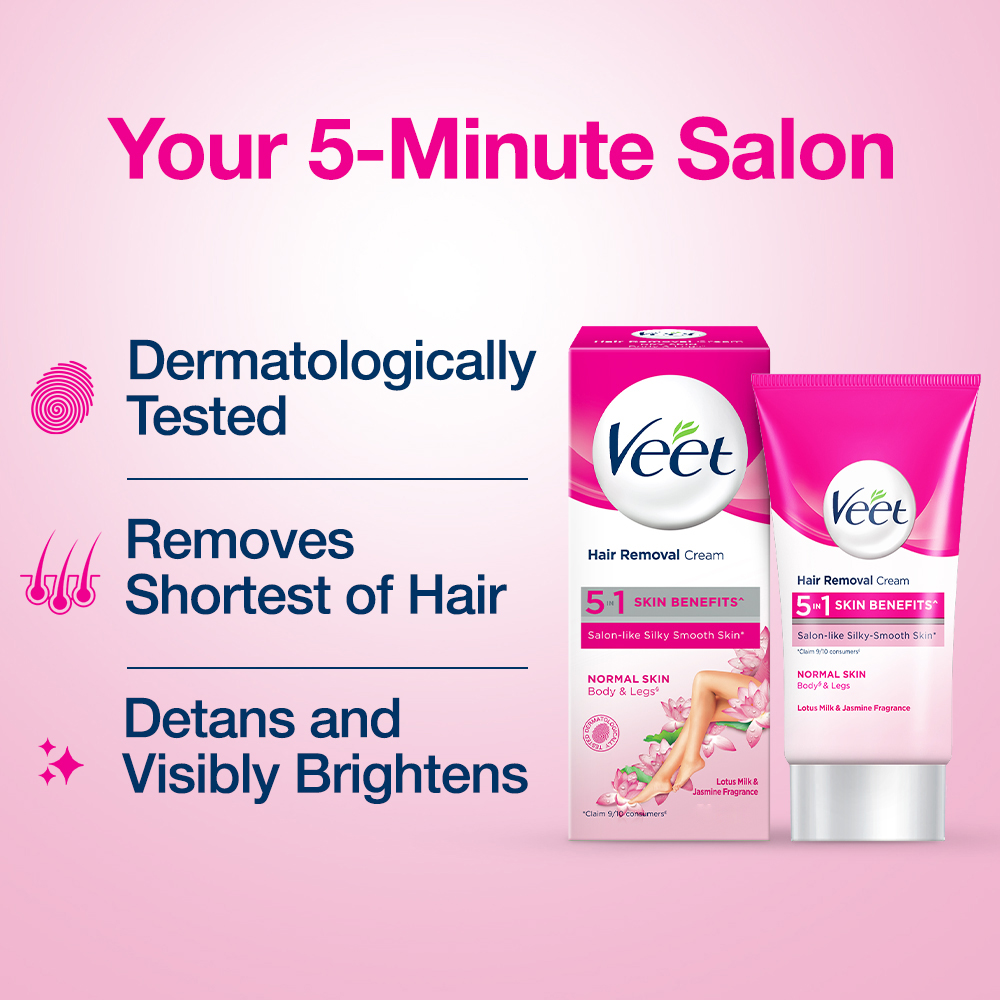 Veet Hair Removal Cream 50gm Normal Skin for Body & Legs, Get Salon-like Silky Smooth Skin with 5 in 1 Skin Benefits